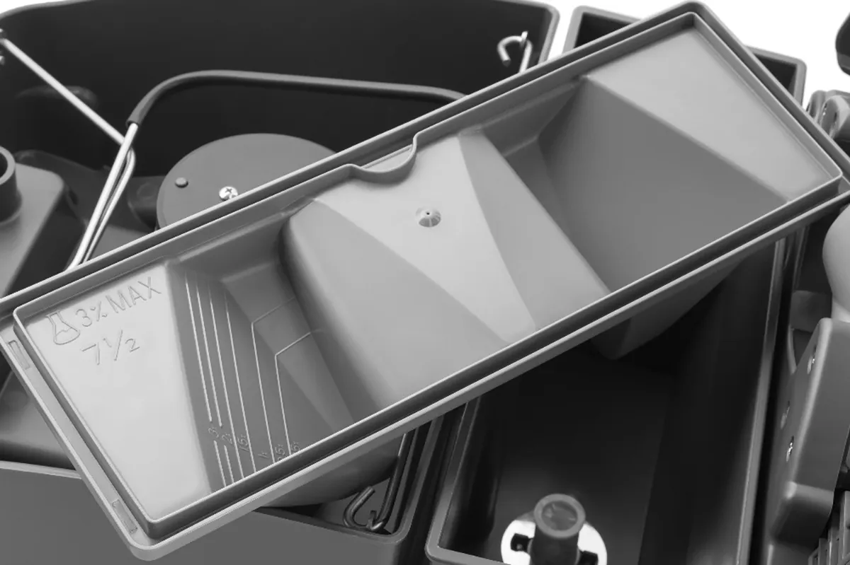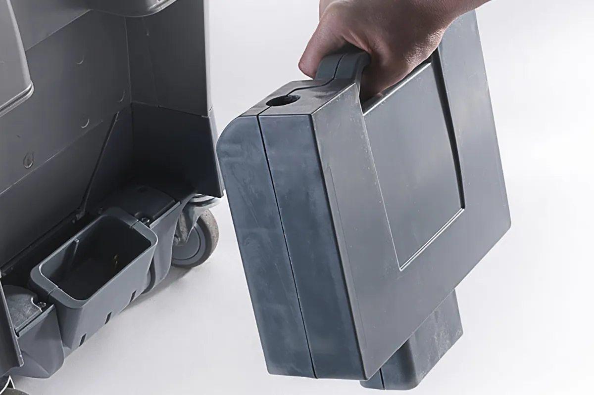GREEN PRO ROLLY NRG 7½ M 33 ist die neue kompakte Scheuersaugmaschine der Serie Rolly, jetzt noch leistungsstärker und zuverlässiger für spitzenmäßige Reinigungsergebnisse! NRG steht für Energie, Kraft, aber auch Innovation: ein System integrierter technischer Lösungen, um die Bedürfnisse der anspruchsvollsten Reinigungskräfte zu erfüllen. Ein leistungsstarkes Modell aus regeneriertem, recycelbarem Kunststoff, mit einem Fassungsvermögen von 7,5 Litern und dank seiner ultrakompakten Abmessungen, des patentierten Gelenkgriffs und der schwenkbaren Hinterräder reinigt er in den engsten und schwer zugänglichen Räumen. Die Lithium-Batterien der neuesten Generation, die sich in einem praktischen Gehäuse befindet, garantieren hohe Autonomie, Zuverlässigkeit und Leistung. Dank des zylindrischen Kopfes mit drei wählbaren Druckstufen auf dem Boden und dem speziellen Saugbalken mit alternierender Absaugung (patentiert) garantiert der GREEN PRO ROLLY NRG 7½ hervorragende Trocknungsergebnisse bei geringem und optimiertem Verbrauch. Da die Maschine über einen niedrigen Lärmpegel verfügt (nur 54 dbA im Silent Mode), ist sie ideal für das Day Cleaning und in Bereichen, in denen ein leiser Lauf von besonderer Bedeutung ist, wie Krankenhäusern, Altersheimen und Schulen. Ein Modell, das dank eines praktischen und intuitiven Bedienfelds, eine vollständige Kontrolle der Funktionen ermöglicht, und den farbigen Hebeln/Knöpfen, die dem Bediener bei der täglichen Handhabung der Maschine helfen, keine Schulung erfordert und von jedem bedient werden kann. Einfache und schnelle ordentliche Wartung.