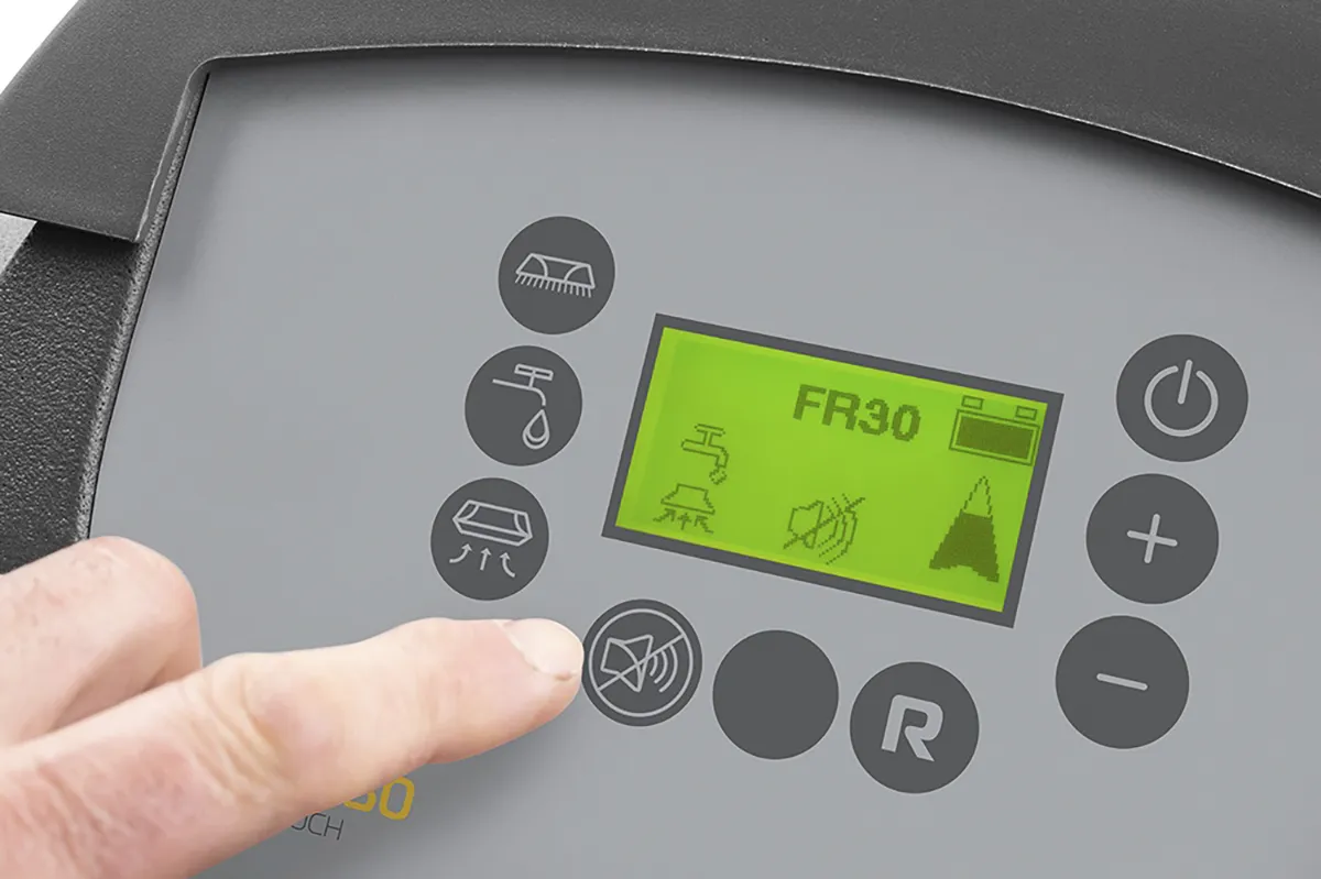 Der Fokus von Ghibli auf Umweltfragen führte zur Entwicklung des GREEN PRO FR 30 D 45 BC TOUCH, einer neuen Version des bekannten Modells FR 30 aus recyceltem Kunststoff, das in seinem Marktsegment schon immer einen wichtigen Bezugspunkt darstellte. Eine Scheuersaugmaschine mit einem Fassungsvermögen von 30 Litern, die dank eines innovativen integrierten Lösungssystems maximale Manövrierfähigkeit und Benutzerfreundlichkeit garantiert. Das benutzerfreundliche, interaktive Bedienfeld mit Display ermöglicht die schnelle Auswahl aller wichtigen Maschinenfunktionen. Die Funktion „Silent Mode“ ist ideal für die tägliche Reinigung und in allen Umgebungen, in denen Ruhe ein wesentliches und qualifizierendes Element ist (Krankenhäuser, Schulen, Altenheime). Der verstellbare und extrem kompakte Saugbalken (nur 65 cm) ermöglicht perfekte Trocknungsergebnisse. Hohe Geschwindigkeit (bis zu 4,5 km/h), hohe Produktivität und lange Betriebsautonomie (über 2 Stunden). Das TOUCH System mit Sensoren garantiert dem Bediener bei der Verwendung der Maschine maximale Flexibilität und Kontrolle.