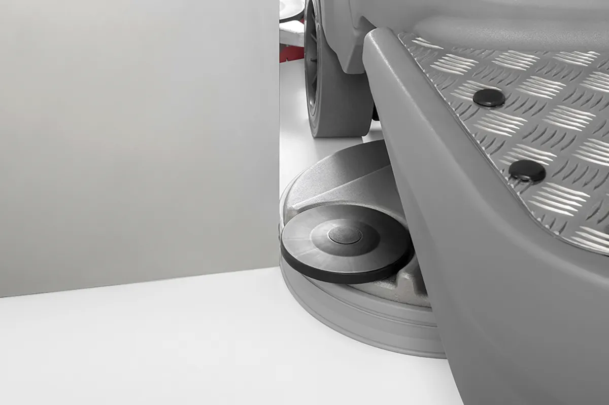 Der robuste Aluminiumkopf, der sich jedem Hindernis perfekt anpasst, macht Ranger konkurrenzlos bei der „wandbündigen“ Reinigung. Die Saugbalkeneinheit, die serienmäßig mit Naturkautschuk ausgestattet ist, garantiert beste Trocknungsergebnisse auf jeder Art von Oberfläche und wird bei versehentlichen Stößen automatisch verschoben und unter die Maschinenstruktur eingefahren, was ein Höchstmaß an Sicherheit und Bedienungsfreundlichkeit garantiert.