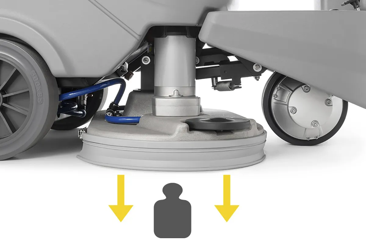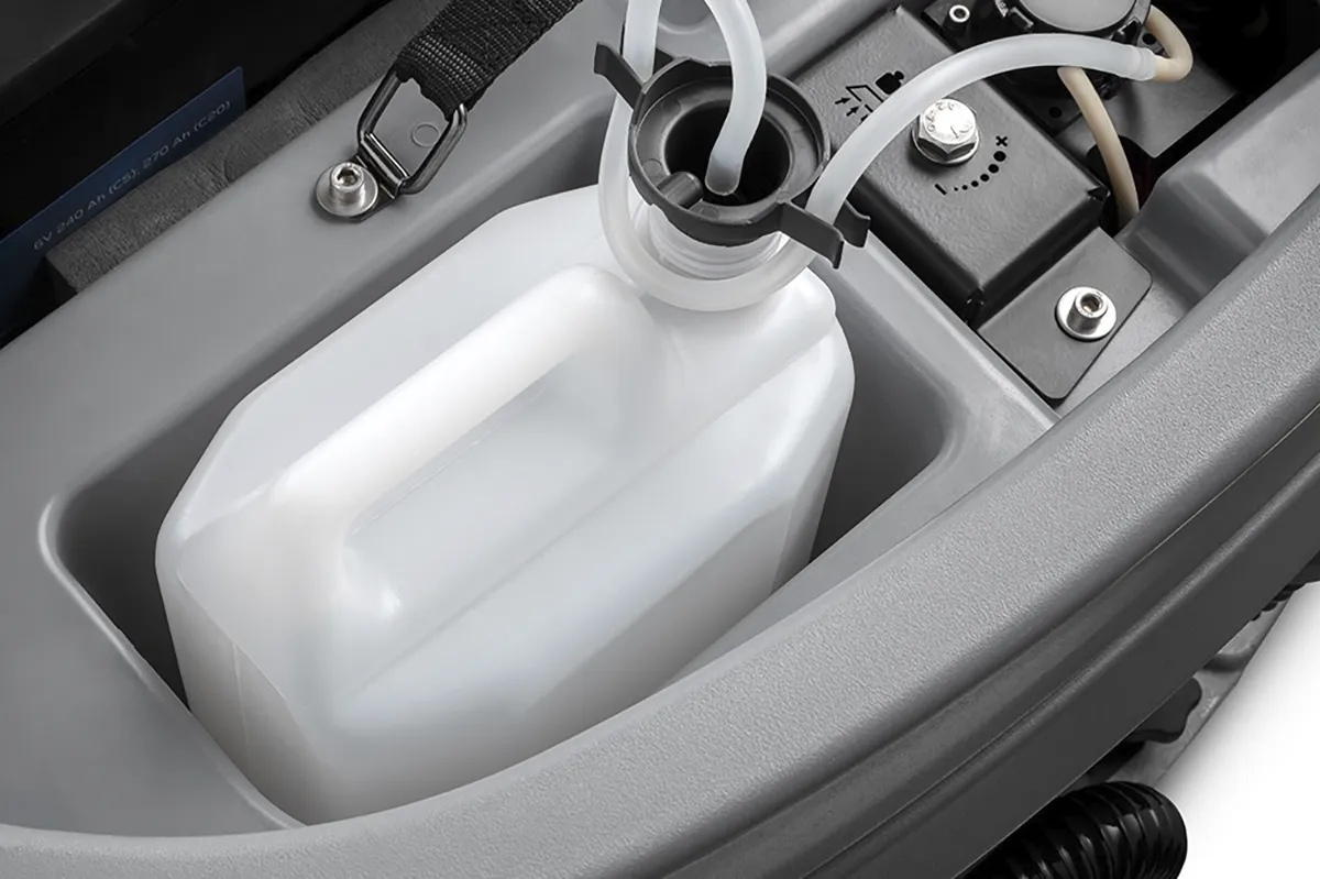 115 Liter Fassungsvermögen und der breite Reinigungsbereich (750 mm) garantieren eine Reinigungsleistung von ca. 4500 m²/h. Der zusätzliche Druck auf den Boden und die Wirkung des Reinigungsmittels (Chemical Mixing System) sorgen für ein hervorragendes Reinigungsergebnis.