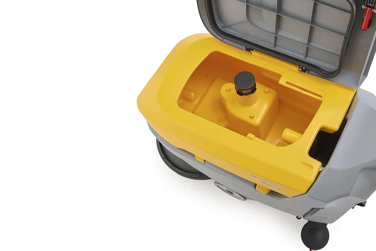 Rexa 50 SD 55 ist eine handgeführte Scheuersaugmaschine, die entwickelt wurde, um hervorragende Leistungen bei der täglichen Reinigung von mittelgroßen Flächen zu gewährleisten. Das Fassungsvermögen von 50 Litern, die Waschbahn von 530 mm und die Saugbreite von 750 mm gewährleisten eine Produktivität von ca. 2650 m²/h und garantieren schnelle und effektive Ergebnisse auch in den komplexesten zu reinigenden Bereichen. Der ergonomische Griff mit integriertem Dual-Sensor-Touch-System ermöglicht eine präzise Steuerung der Maschine und macht jede Arbeitssitzung einfacher und bequemer. Rexa 50 SD (Simply Driven) wurde entwickelt, um die beste Wasch- und Trockenleistung zu garantieren, kombiniert mit einer extrem einfachen Handhabung und Verwendung. Eine perfekte Mischung, die die beste Leistung in der Anwendung garantiert und jeden Reinigungsvorgang einfacher und funktioneller macht. Der hocheffiziente Vakuummotor bietet eine hohe Leistung bei gleichzeitig geringerem Verbrauch für einen nachhaltigeren und kostengünstigeren Einsatz. Die tägliche Wartung wird durch den Auffangbehälter mit großer Öffnung erleichtert, der die Inspektion und Reinigung erleichtert, sowie durch die praktische, leicht herausnehmbare Abfallwanne, die eine schnelle Abfallentsorgung ermöglicht. Rexa 50 SD ist die ideale Lösung für alle, die eine kompakte, effiziente und benutzerfreundliche Scheuersaugmaschine suchen, die eine hohe Reinigungsleistung mit einer praktischen und schnellen Handhabung der Maschine verbindet. Sie ist in drei Konfigurationen erhältlich: eine Basisversion und zwei Vollpaketversionen, BC und BC PLUS, , komplett mit Batterien und Ladegerät. Die BC-Version bietet eine Autonomie von über 2 Stunden, während die BC PLUS-Version bis zu 3 Stunden erreicht.