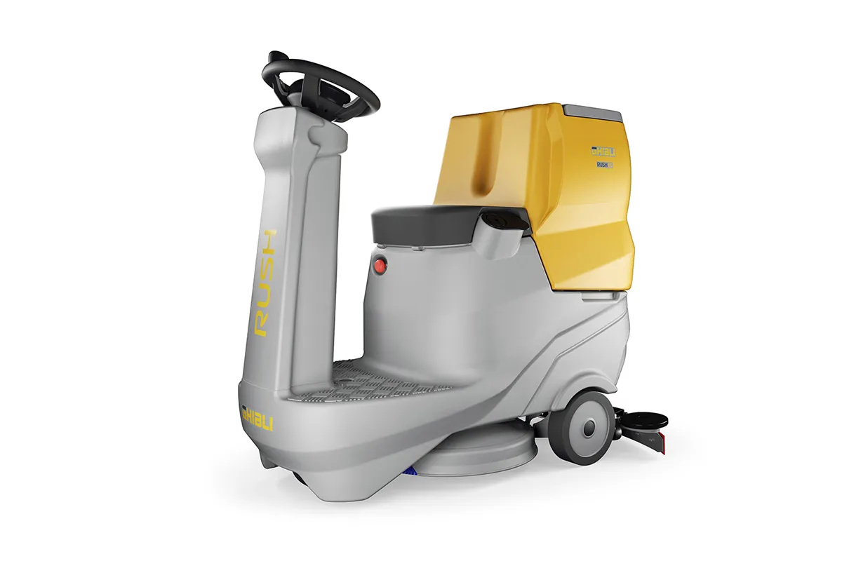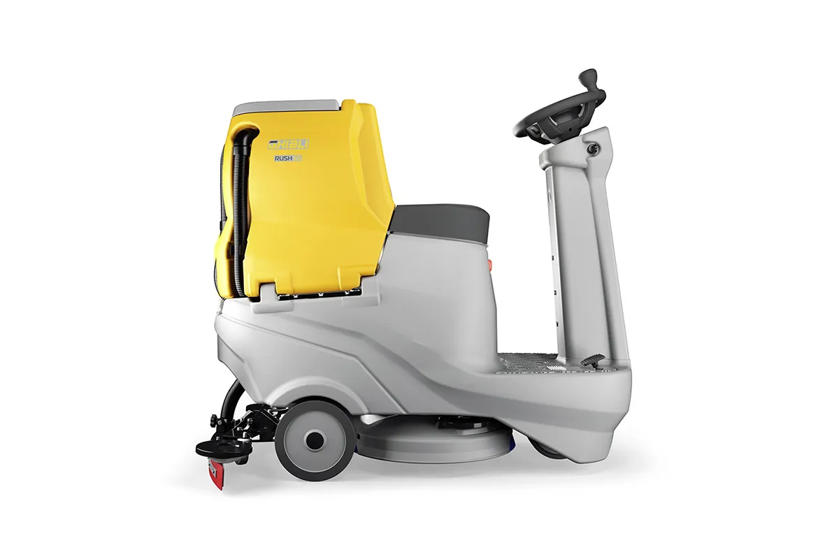 Rush 65 RD 55 ist eine Aufsitz-Scheuersaugmaschine, die ideal für den Einsatz auf mittelgroßen Flächen geeignet ist. Mit einem Fassungsvermögen von 65 Litern, einer Waschspur von 55 cm und einer Saugbreite von 75 cm sowie einer Leistung von ca. 3200 m²/Std. ist der Rush kompakt und äußerst wendig und kann sich auch in engen Räumen problemlos bewegen und schnell und effektiv reinigen. Mit einem zusätzlichen Druck auf den Boden und einer Saugeinheit, die eine hervorragende Trocknung gewährleistet, ist Rush die ideale Lösung für eine gründliche und effiziente Reinigung auf allen Arten von Oberflächen.