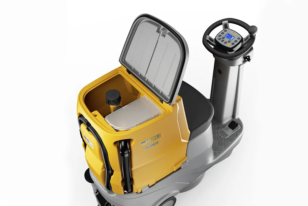 Dies und die neue automatische Funktion zum An- und Abkoppeln der Bürste machen die Rush äußerst benutzerfreundlich, erfordert keine Schulung und auch weniger erfahrene Bediener können diese professionelle Scheuersaugmaschine mit großer Leichtigkeit bedienen. Erhältlich in zwei Versionen: eine Basisversion und zwei Komplettpakete mit Akkus und Ladegerät, die eine Betriebsdauer von rund 3½ Stunden in der Version BC und über 3 Stunden in der Version BC-Lithium garantieren. Die Lithium-Ionen-Batterien haben im Vergleich zu herkömmlichen Batterien eine längere Lebensdauer und einen geringeren Wartungsaufwand. Sie können jederzeit, auch teilweise in kurzen Nutzungspausen, wieder aufgeladen werden, ohne Schaden zu nehmen.