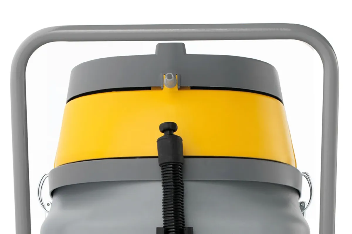 Nass-/Trockensauger, der sich durch ein großes Fassungsvermögen und hohe Leistungen auszeichnet. Es können jeweils nur einer, zwei oder alle drei Motoren gleichzeitig verwendet werden. Die schlagfeste Ausführung „ShockProof“ (SP) ist aufgrund des innovativen Behälters aus hochfestem, schlagfestem Kunststoff extrem robust. Dank des praktischen Griffs und der Räder mit großem Durchmesser leicht zu handhaben und zu bewegen. Auch die Entleerung des Behälters mit 90 Liter Fassungsvermögen wird durch den vorhandenen Ablassschlauch erleichtert. AS 60 PD SP ist die ideale Lösung für schwere Anwendungen und zur Reinigung großer Flächen. Nylonfilter und Kartuschenfilter (normal und HEPA) auf Wunsch erhältlich.
