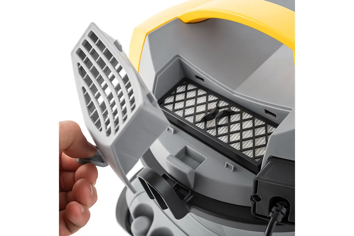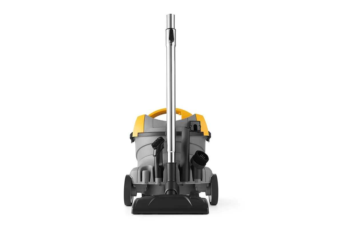 Kompakter und handlicher Profi-Trockensauger, der dank seines leistungsstarken 800-W-Saugmotors hervorragende Leistungen erbringt. Die schwenkbaren Vorderräder und die starren Hinterräder mit großem Durchmesser bieten maximale Manövrierfähigkeit und Stabilität. Der ergonomische Griff sowie die Zubehör- und Kabelhalterungen sorgen für maximalen Komfort bei der Benutzung der Maschine. Durch seine kompakte Größe und sein geringes Gewicht eignet er sich perfekt für die Reinigung kleiner und mittelgroßer Räume wie Hotels, Büros und Geschäfte.