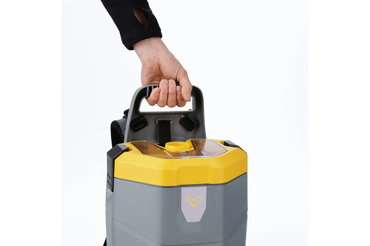 Der Voyager Rucksackstaubsauger überzeugt durch sein kompaktes, leichtes und ergonomisches Design, das maximale Bewegungsfreiheit und hohen Komfort bei der Reinigung bietet.
