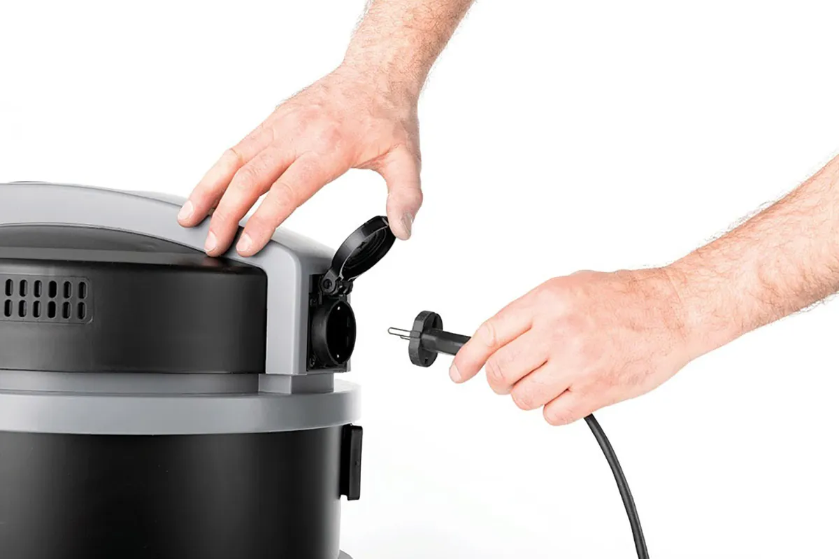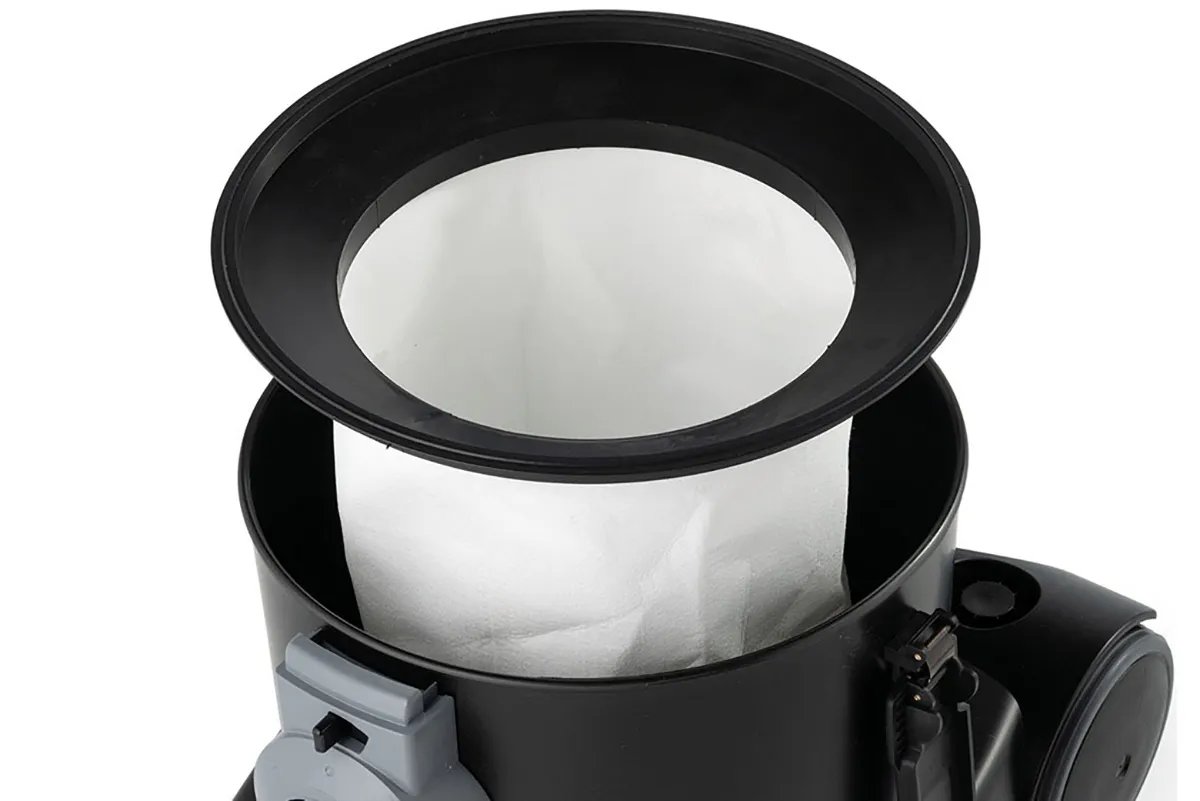 Professioneller Nass-/Trockensauger mit leistungsstarkem, hocheffizientem Motor der neuesten Generation. Ausgestattet mit einem dreistufigen FD (Fine Dust)-Filtersystem (Vliesfilter, Gewebefilter und in der Standardausstattung mit Kartuschenfilter aus Teflon (PTFE) der Klasse M, um beste Filtrationsleistungen und einen größeren Motorschutz zu gewährleisten. Modell mit dem Filterrüttler-System „SHOCKING VALVE“, das eine halbautomatische Reinigung des Filters ermöglicht und eine extreme Langlebigkeit gewährleistet, wodurch Verstopfungen, Überladungen und Reduzierung der Filterleistung vermieden werden. Zubehörhalterungen und Abluftfilter. Standard Papierfilterbeutel, Nylonfilter und Textilfilter. Stromanschluss für Elektrovorrichtung (max power 2000 W). Manueller oder automatischer Einschalter bei Betrieb mit Elektrogeräten. Auf Nachfrage auch als Nass-/ Trockensauger mit speziellem Zubehör erhältlich.
